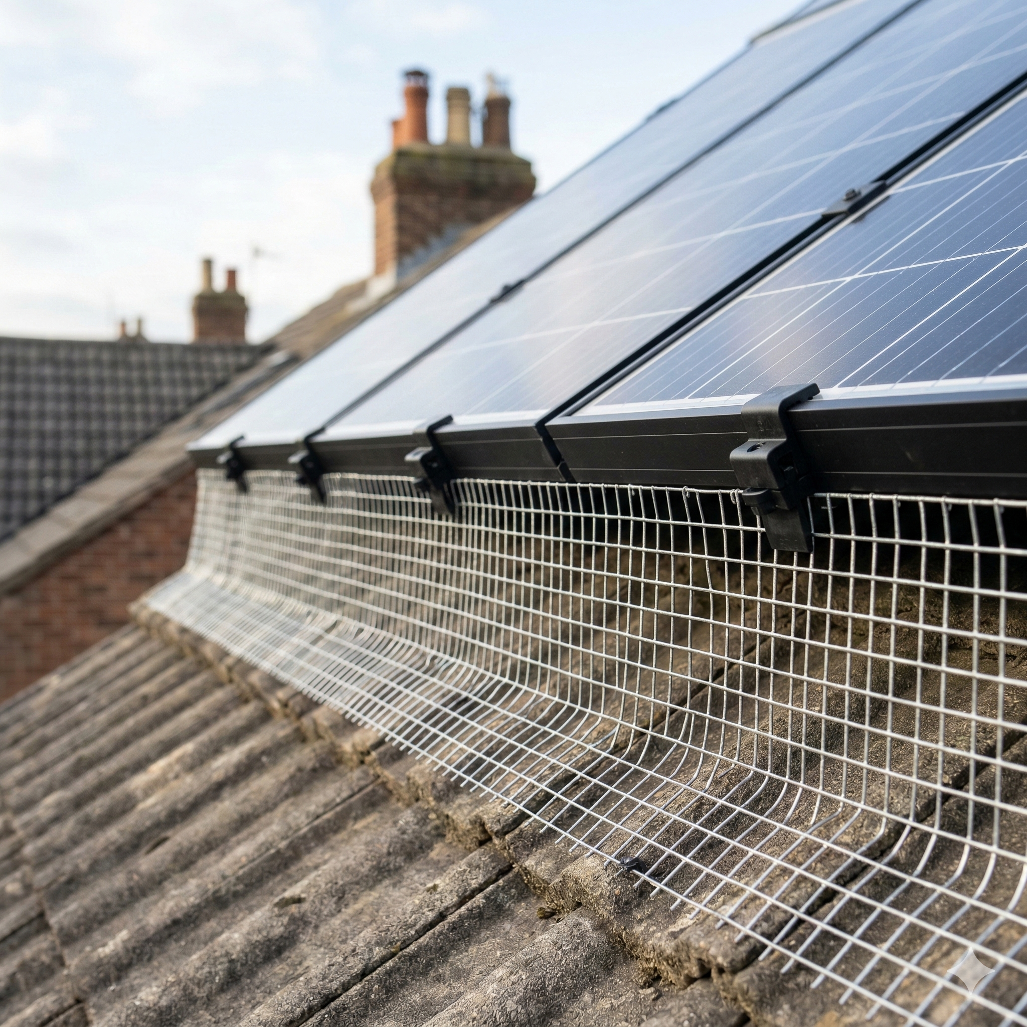 Galvanised steel mesh guards fitted without drilling — your panels and roof warranty remain untouched. From £250. Most installations completed in a single visit.
